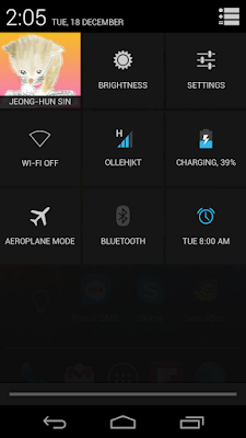 The existing common implementations of this from Samsung/LG/PanTech or custom ROM makers were usually showed this on the top of the notification menu. All frequently accessed items were just one swipe away, and for seldom used items, just one more swipe.With the Google's implementation, I have to swipe down then I have to press the settings icon (I do not know what it is called) at the top right of the screen. The problem is that Google removed colours from the notification menu icons so everything looks white and at the very vicinity of the shortcut icon is the clear notifications button. The two icons usually confuses me, so I happen to press the other by mistake.